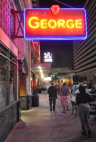 Motorcycles idle at the entrance to Hogs and Heifers, barhoppers sip Prohibition-era cocktails at Mob Bar and well-dressed guests take in dinner at Triple George before heading to the Smith Center for the Performing Arts for a show.