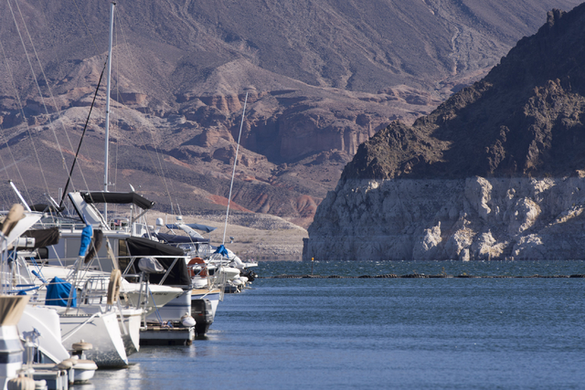 The surface of Lake Mead has dropped almost 130 feet since the current drought affecting the Colorado River drainage basin began in 2000.