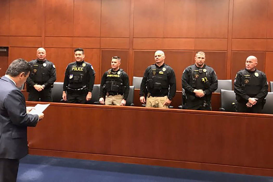 U.S. Marshal Gary Schofield deputized the units at the Lloyd George U.S. Courthouse in downtown Las Vegas on Monday.