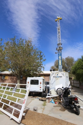 Four surveillance towers stand outside a house, motor home, travel trailer, semi-truck container and three storage sheds, according to the affidavit.