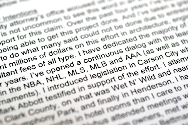 “I wanted to take the time to personally assure that my vision and intent to develop a world-class professional sports center in Henderson has not changed … I appreciate that you stood by my side in support of our efforts to bring professional sports to southern Nevada and I will make this a success for you. … It will get done and it will be as much your success as ours.”