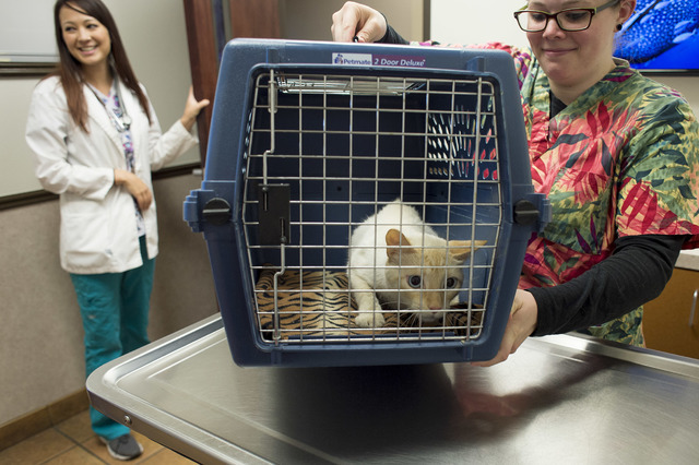 “It’s been about a month since we got him, and he’s definitely feral,” said Carolyn Garcia, a veterinarian with Pebble Maryland Animal Hospital, on Pebble Road and South Maryland Parkway. “We can’t even touch him. We had to sedate him to give him his vaccinations.”