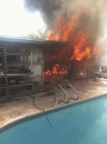 A patio fire quickly spread and burned two neighboring homes in the west Las Vegas valley Tuesday afternoon.