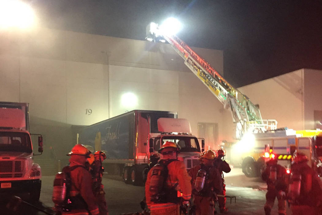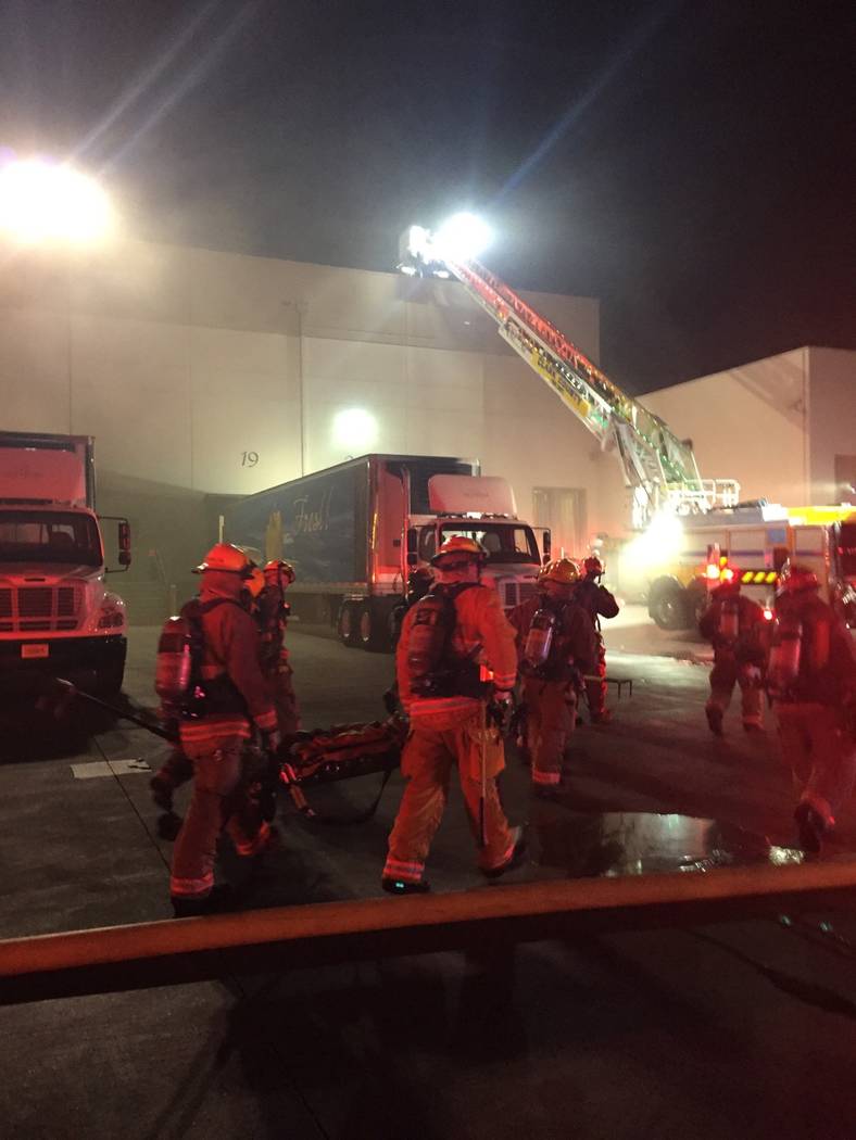 More than 100 employees were inside the food storage warehouse when the fire broke out about 6:50 p.m. at 6745 Escondido St., near East Sunset Road.