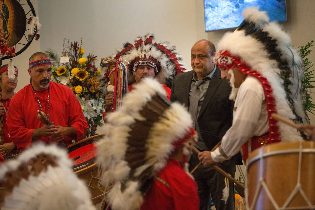 About 40 Apache dancers filled a northwest valley chapel on Sunday for a roughly 25-minute performance. Groups of dancers took turns kneeling in front of his open casket.