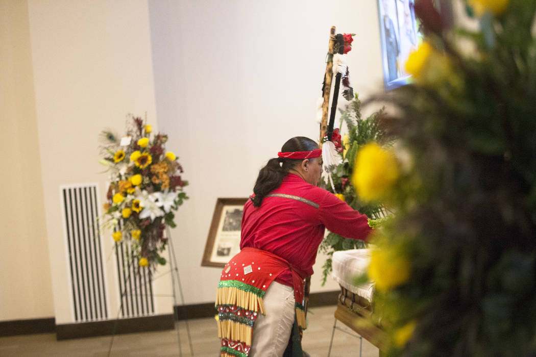 About 40 Apache dancers filled a northwest valley chapel on Sunday for a roughly 25-minute performance. Groups of dancers took turns kneeling in front of his open casket.