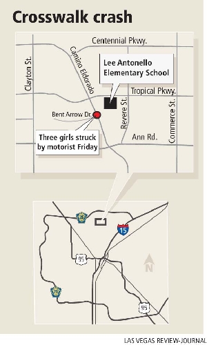 The children entered a crosswalk near Eldorado Park after a vehicle in the lane closest to them stopped. A 78-year-old woman driving in the outer lane did not stop. She crashed into the children and continued driving for about 60 yards, North Las Vegas police Sgt. Tim Bedwell said.