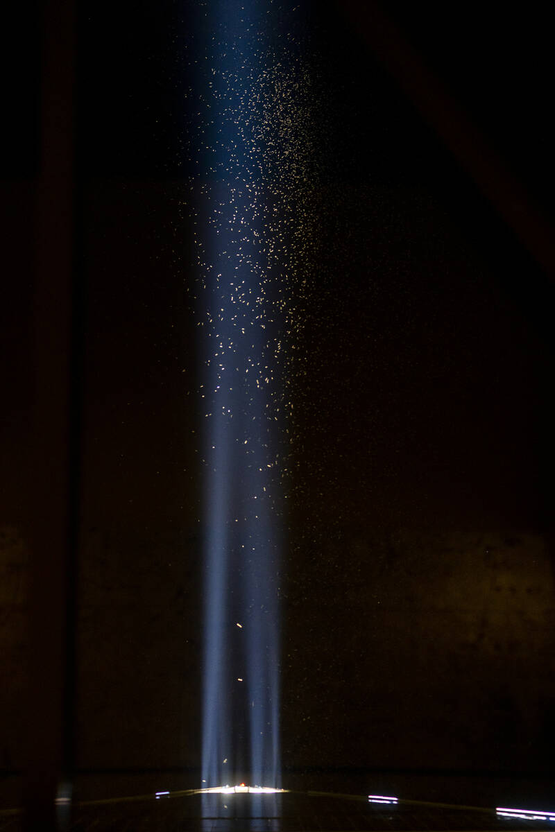 Grasshoppers are native to the southwest desert and are a common sight, but wet summers bring excess vegetation growth, giving the grasshoppers a feast of a lifetime, according to UNLV life science professor Allen Gibbs. Once the grasshoppers ran out of fresh vegetation, he said, they flew to “the brightest place in the planet.”