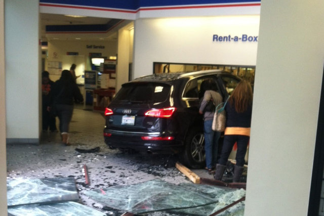 No one was hurt, but the crash damaged 220 of the building’s 944 mail boxes, according to Postal Service spokesman David Rupert.