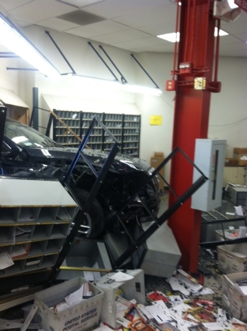 No one was hurt, but the crash damaged 220 of the building’s 944 mail boxes, according to Postal Service spokesman David Rupert.
