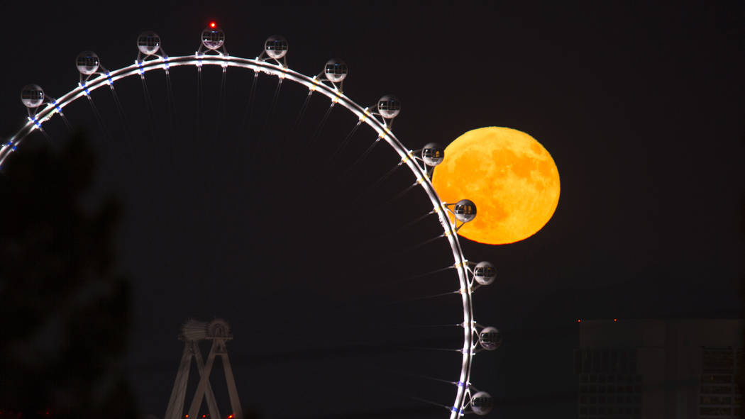 A full moon rises behind the High Roller observation wheel on the Strip in Las Vegas on Sunday, Aug. 26, 2018. The world’s tallest observation wheel celebrates it’s fifth year on Sunday, March 31, 2019. Richard Brian Las Vegas Review-Journal @vegasphotograph