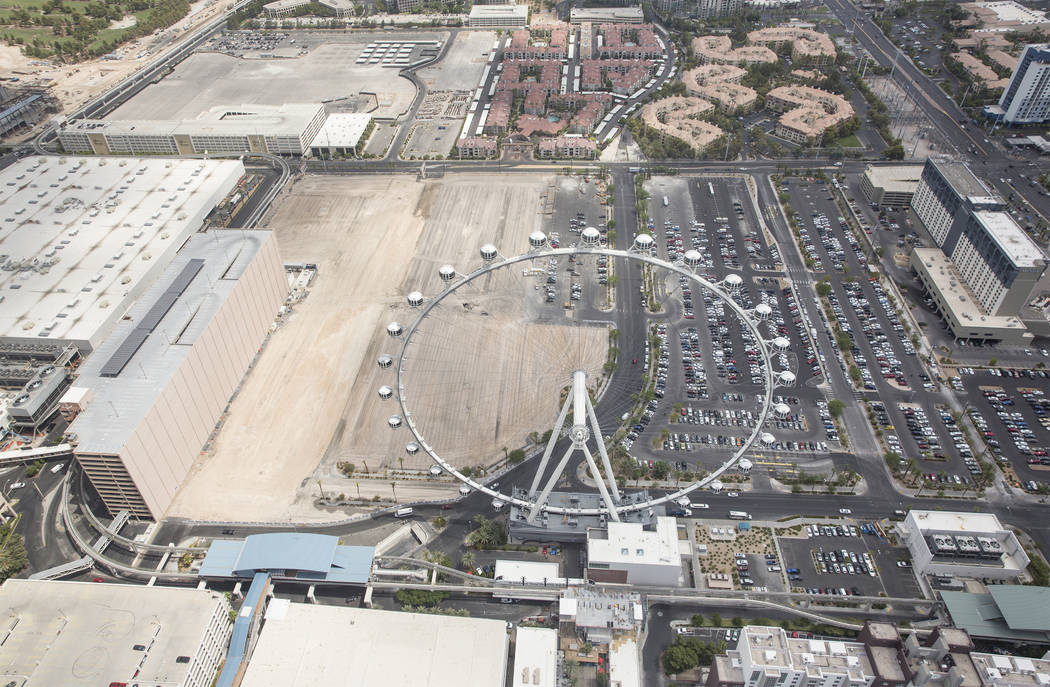 Aerial photos of construction of the future Caesars convention center space east of the High Roller on Wednesday, August 22, 2018, in Las Vegas. The world’s tallest observation wheel celebrates it’s fifth year on Sunday, March 31, 2019.Benjamin Hager Las Vegas Review-Journal