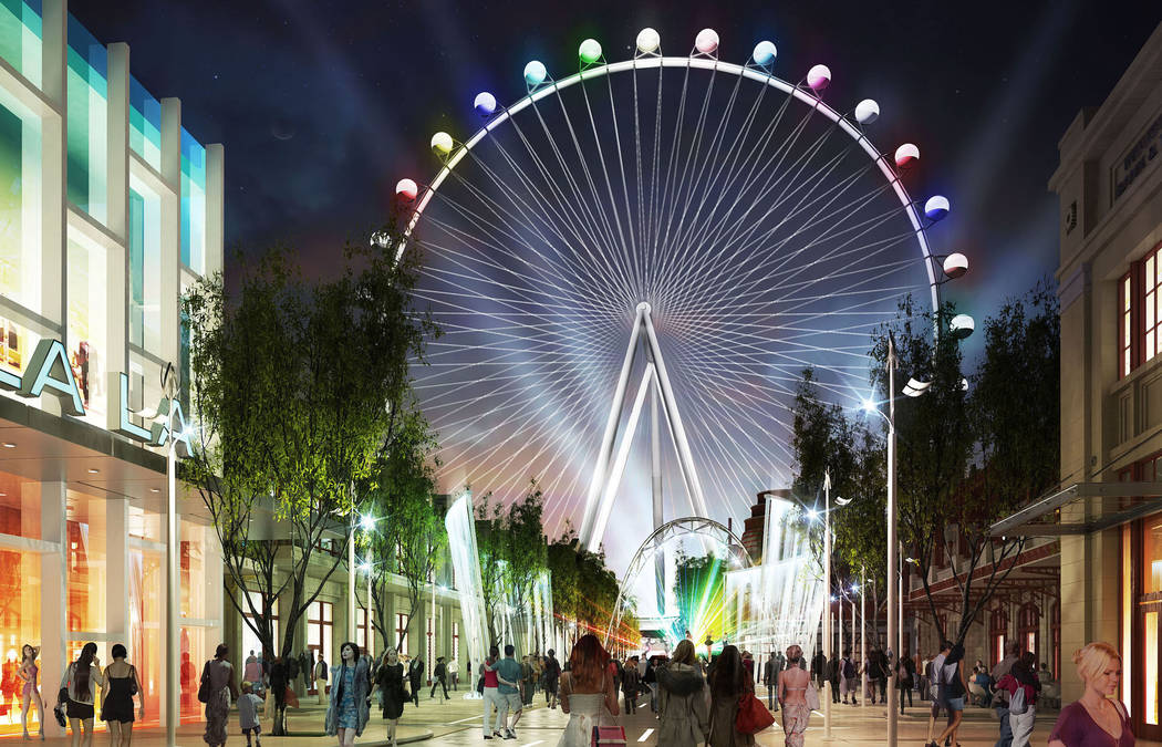 Artist’s rendering of Project Linq, submitted Tuesday July 23, 2013. The Linq will be a $550 million outdoor retail, dining and entertainment area, similar to the current Fremont Street Experience. It is being modelled after The Grove in Los Angeles and will feature the word’s largest observation wheel, called “The High Roller”. The world’s tallest observation wheel celebrates it’s fifth year on Sunday, March 31, 2019. (Courtesy Caesars Entertainment)