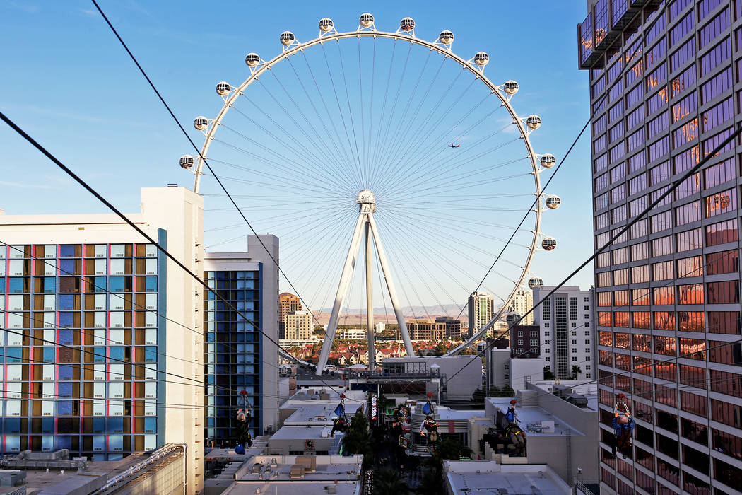 The 550-foot tower at the LINQ Promenade has 28 cabins carrying up to 40 people each. It takes 30 minutes to complete one revolution.