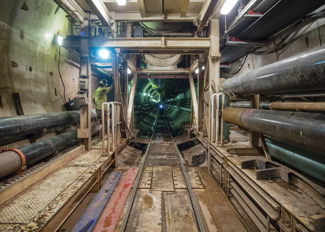 As he spoke, a 23-foot-tall, rock-chewing worm of a machine beneath the bed of Lake Mead was slowly and carefully grinding through the last few feet of a three-mile journey that began in 2011.