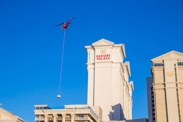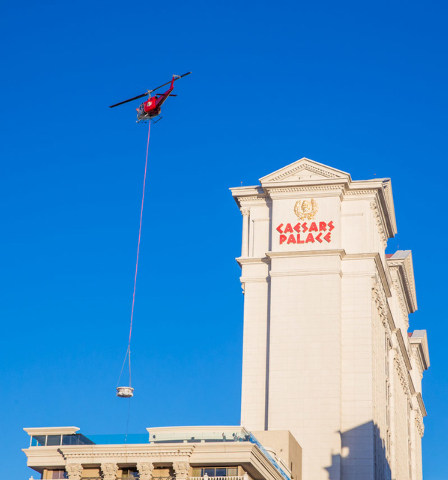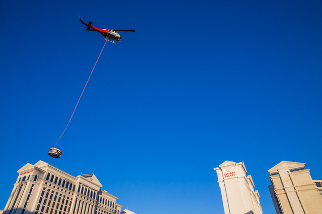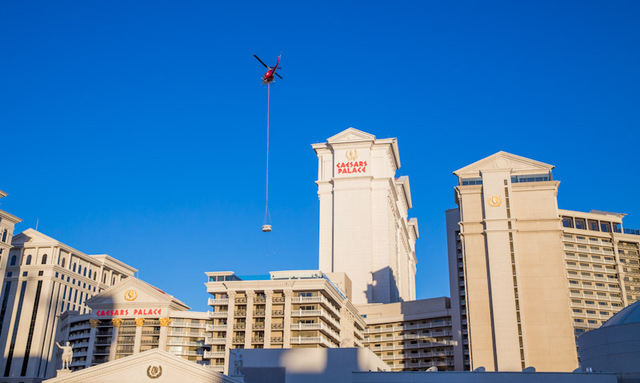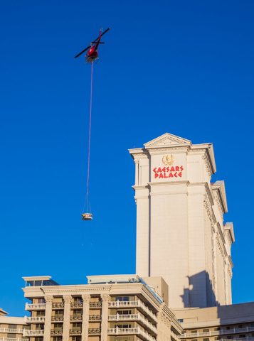 A five-person hot tub was lifted by helicopter to the top of Nobu Hotel Caesars Place Monday, where it was placed as the final piece in the hotel’s soon-to-be-opened Nobu Villa.