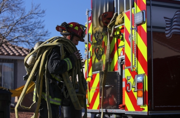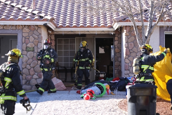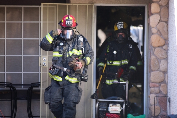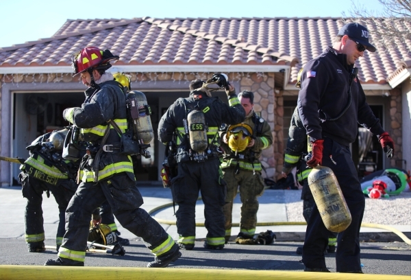 A North Las Vegas house fire displaced six people, including a child, at about 1:15 p.m. Saturday, according to fire department spokesman Capt. Cedric Williams.