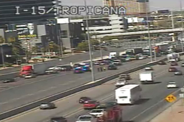 Southbound Interstate 15 is closed at Tropicana for a police investigation. (Courtesy FAST Cameras)