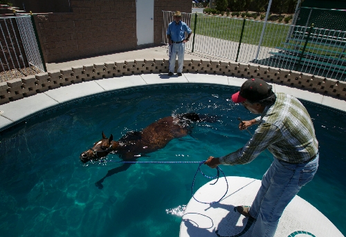 At a Thursday hearing, Clark County District Judge Elizabeth Gonzalez ruled that Steven Kennedy’s request, through intermediate companies including CSD LLC, to shed the $37,000-a-month upkeep for the 51 horses “appears inconsistent with components of the operating agreement” he signed with Newton two years ago. The agreement, between Newton and entities he controls and companies in which Kennedy is either an owner or manager, called for transforming Newton’s longtime Las Vegas home and the about 40 surrounding acres at Sunset and Pecos roads into a tribute to his career, a sort of Graceland in the desert.