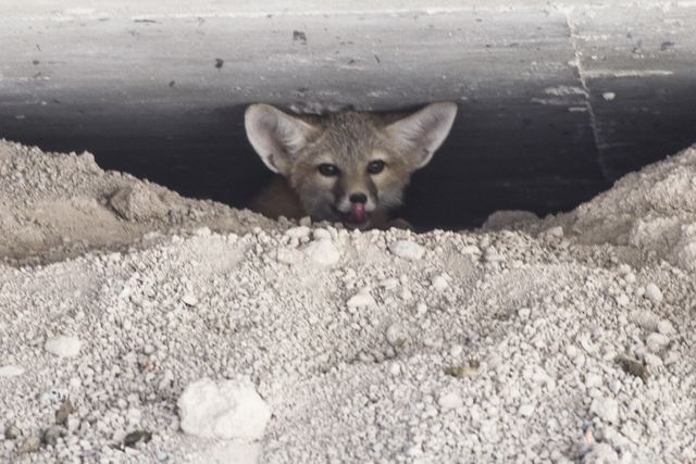 A family of kit foxes picked an interesting spot to make their home — the Clark County Shooting Complex.