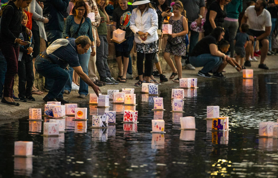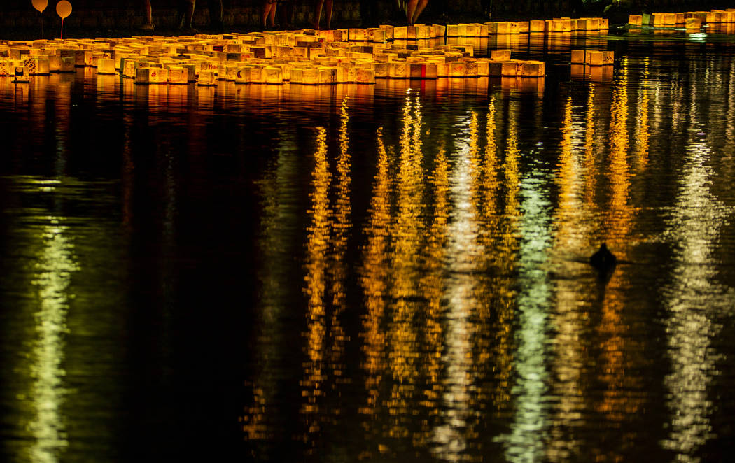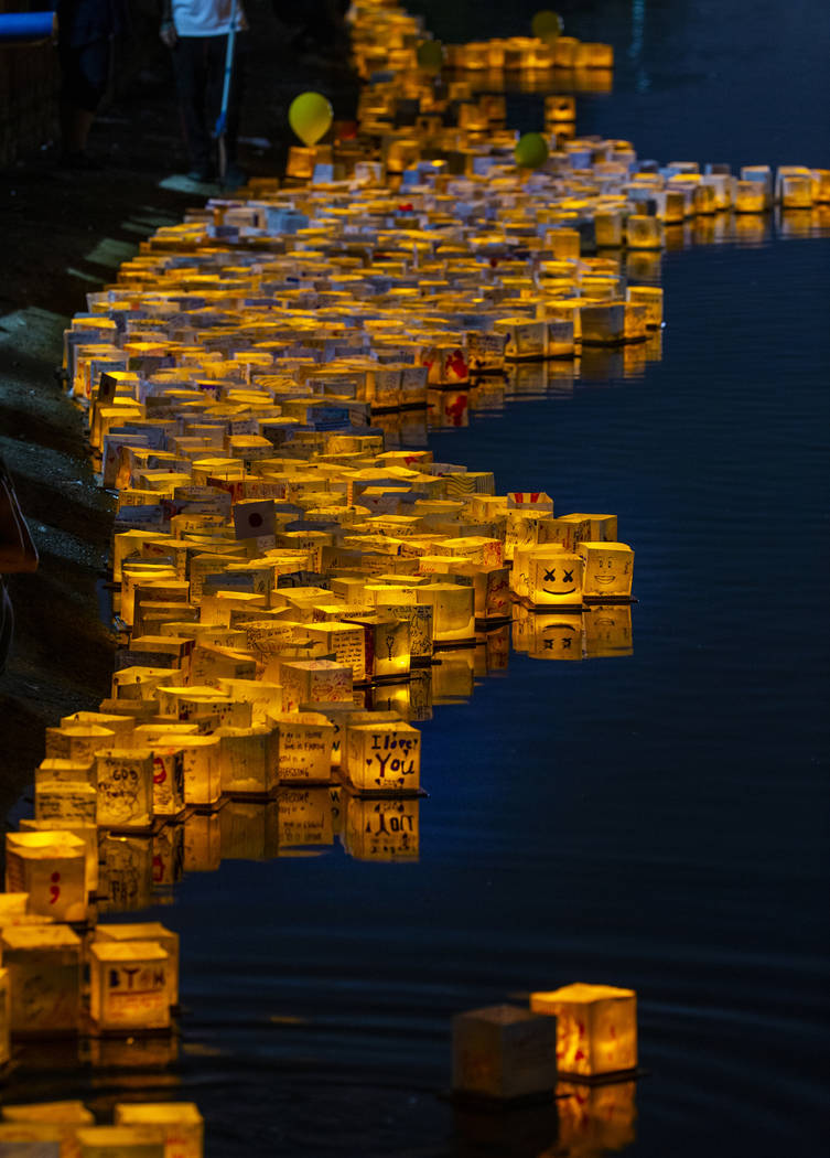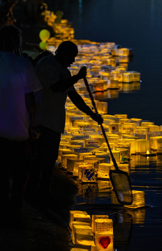Participants penned messages of love, hope, happiness and healing on personal lanterns before launching them onto the water at the lake at the park.