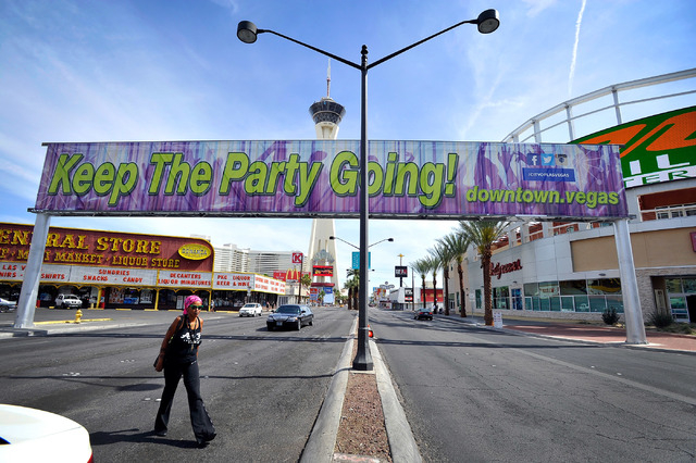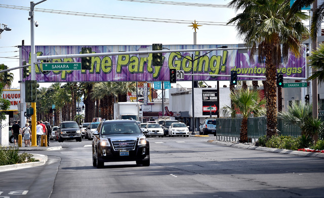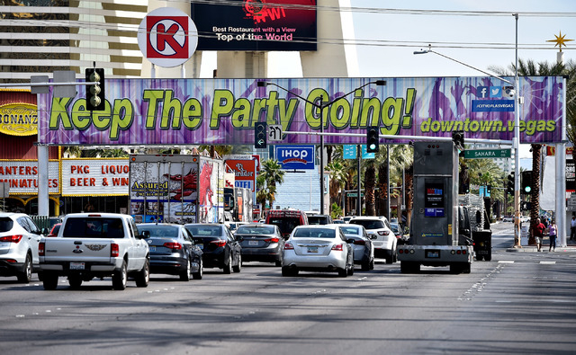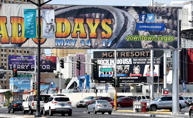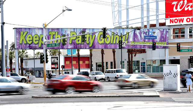 At 100 feet wide and nearly 30 feet tall, the city of Las Vegas’ latest attempt to promote downtown tourism is sized to draw eyeballs as it spans Las Vegas Boulevard at Sahara Avenue, easily seen by the estimated 82,000 Rock in Rio visitors over the weekend.