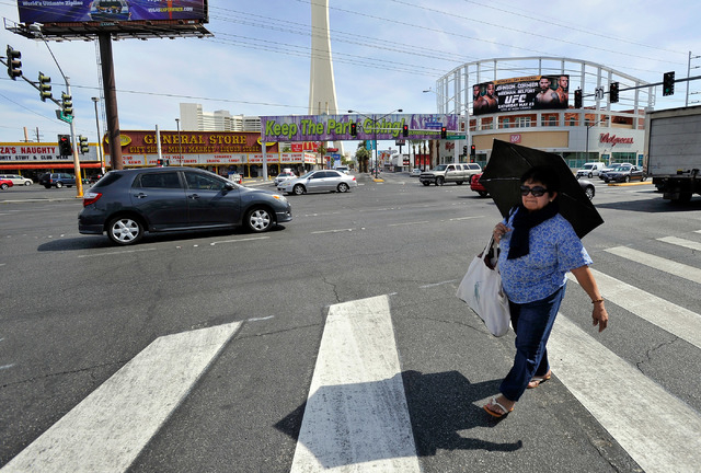 The county’s ban on such signs was reaffirmed in February following testimony from Las Vegas police and the county’s Public Works director, who said traffic signals could get “lost in the advertising.”