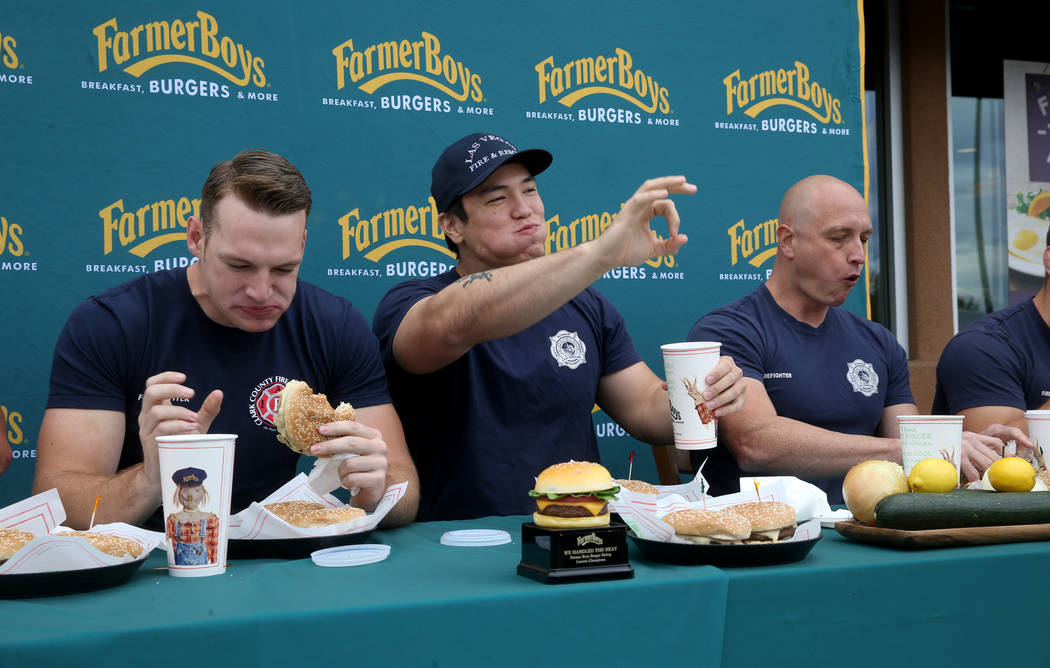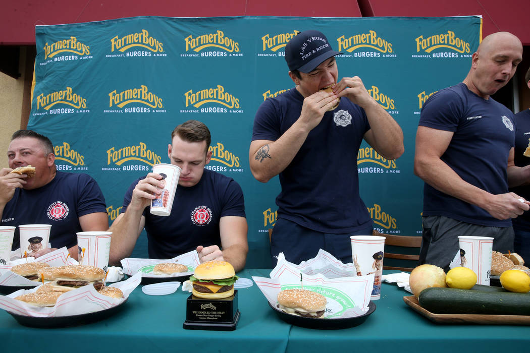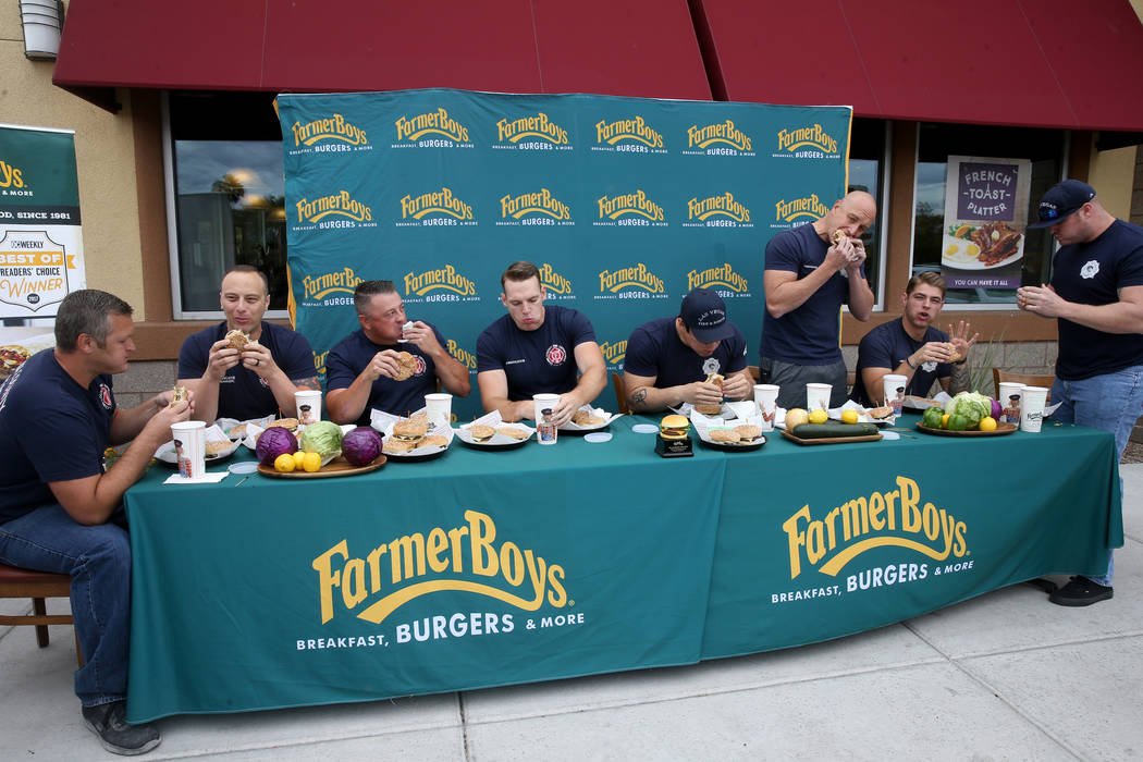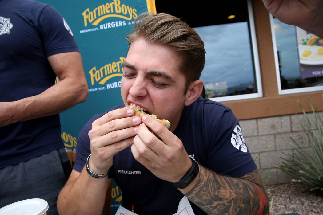 Farmer Boys, the restaurant that sponsored the competition, donated $100 to the Firefighters of Southern Nevada Burn Foundation for every burger eaten. Eight firefighters ate 47 Barn Burners, a burger with pepperjack cheese, jalapenos and a fiery sauce.