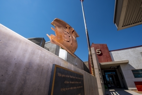 On display in front of the fire station is a piece of steel from the World Trade Center. The city of New York has requested that the World Trade Center flag be flown over the piece of steel at half-staff each Sept. 11. It has been done every year since the city of Las Vegas received the flag in 2004.