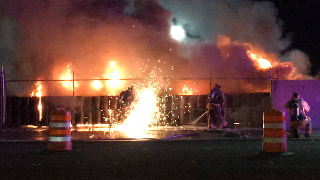 Las Vegas fire crews put out a blaze near the Las Vegas Review-Journal on Tuesday night.