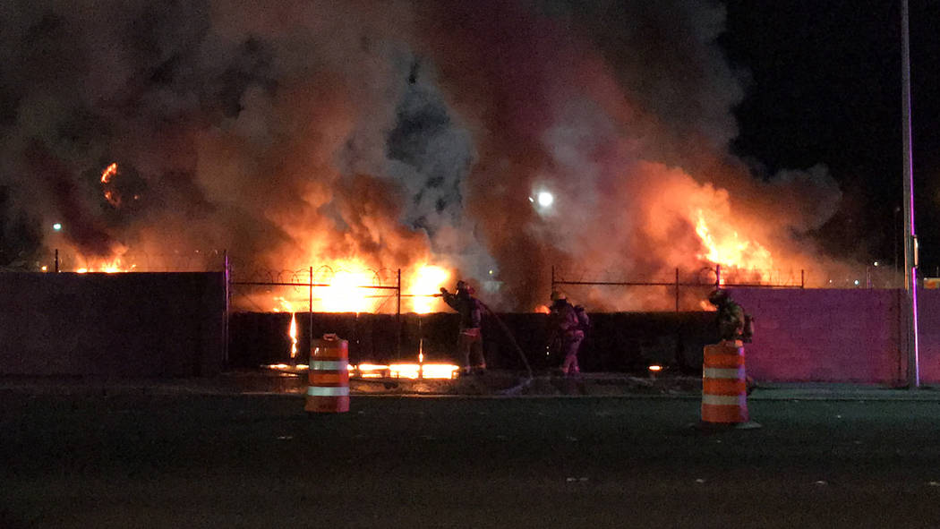 The fire happened along a fence line near Martin Luther King Boulevard and Bonanza Road, which was closed in both directions about 7:30 p.m. The fire was outside, and no injuries were reported, according to the Las Vegas Fire Department.