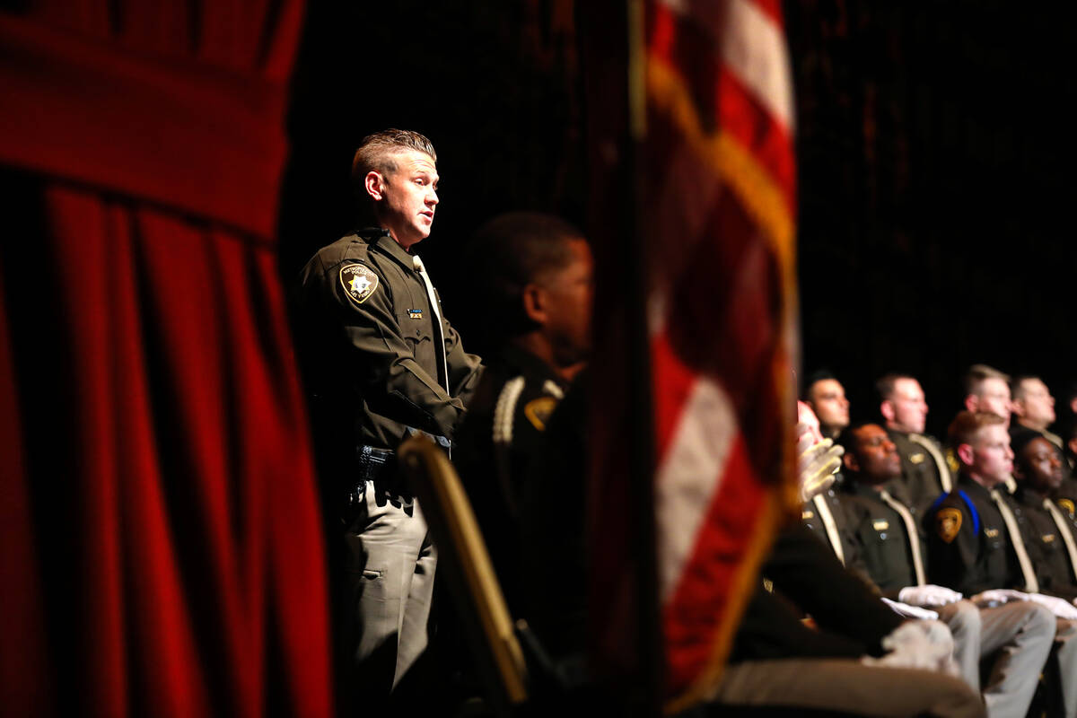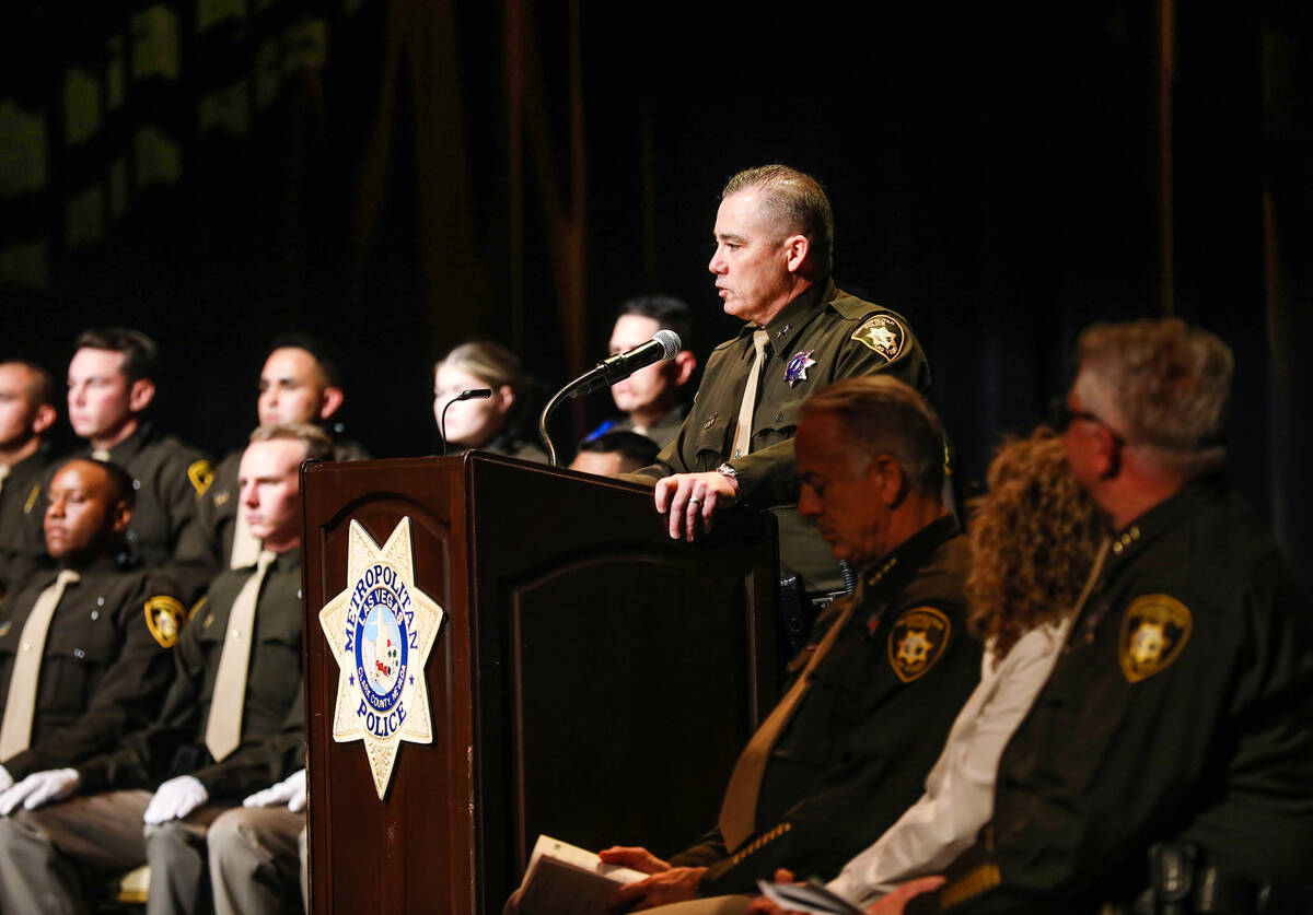 Clark Country Sheriff Joe Lombardo swears in the newest class of new police recruits at the Metropolitan Police Department’s graduation ceremony at The Orleans in Las Vegas on Thursday, Oct. 27, 2022. (Rachel Aston/Las Vegas Review-Journal) @rookie__rae