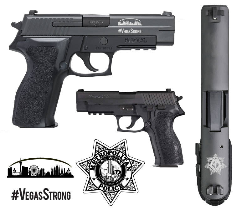The AR-15-style rifle was among seven firearms that were raffled after the honor guard’s fifth annual Scoot and Shoot fundraiser. One of the pistols advertised as a prize showed Metro’s badge along with the hashtag #VegasStrong and a picture of the Strip skyline. Another AR-15-style rifle offered as a grand prize showed the hashtag within an outline of Nevada.