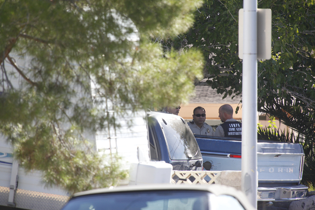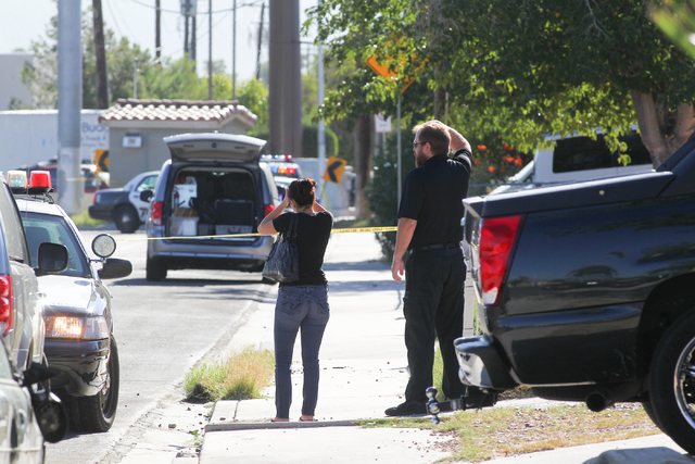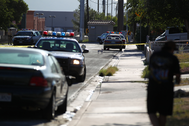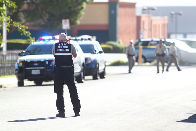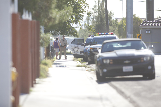 Las Vegas police are investigating a shooting in the 5100 block of Del Rey Avenue Wednesday morning. (Chase Stevens/Las Vegas Review-Journal)
