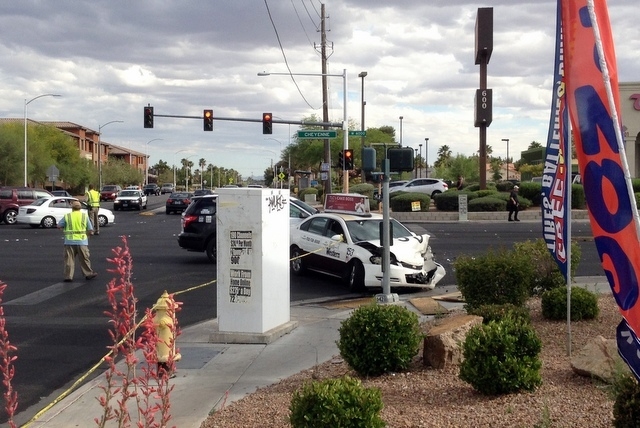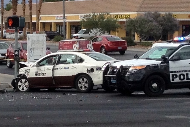 Behind the wheel of the cab, the woman headed to Cheyenne Avenue and went west, according to police. When she got to the intersection at Jones Boulevard, she ran a red light and collided with another vehicle.