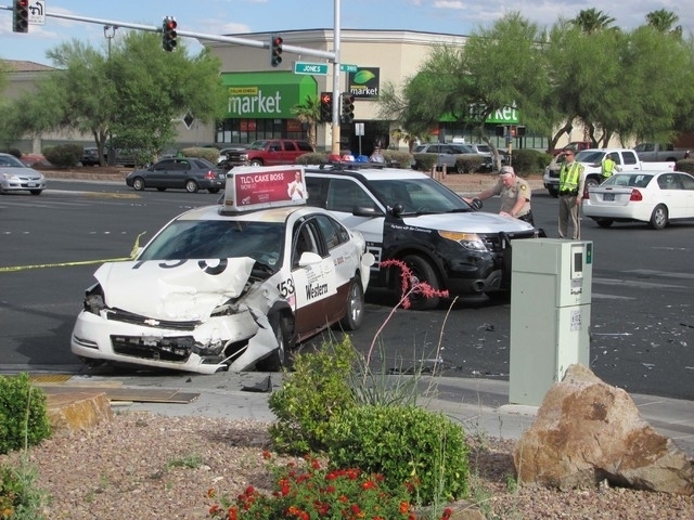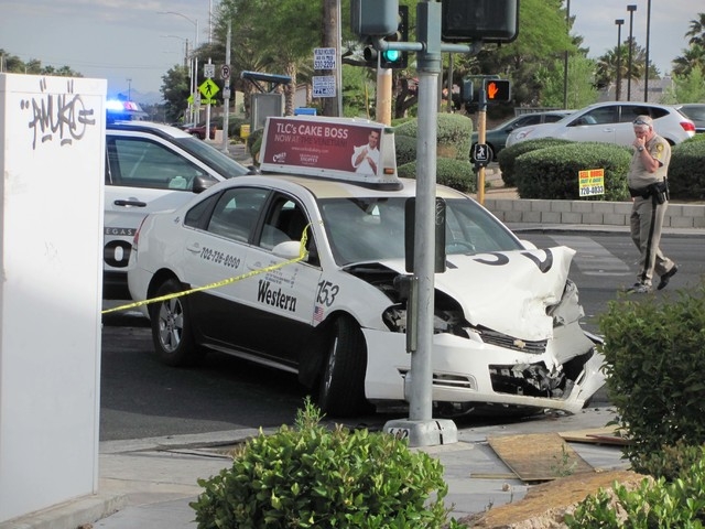 Behind the wheel of the cab, the woman headed to Cheyenne Avenue and went west, according to police. When she got to the intersection at Jones Boulevard, she ran a red light and collided with another vehicle.