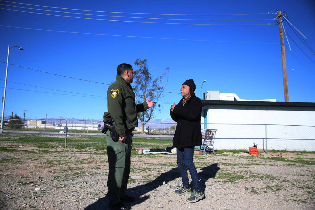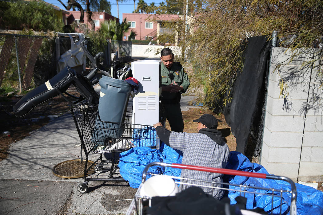 After visiting the encampment, Nunez, Swallia and the social workers next headed to an alley between two houses near Cedar Avenue and Mojave Road, where a neighbor had called that morning to report that a man with a large microwave and a filled shopping cart was setting up shop behind her house.