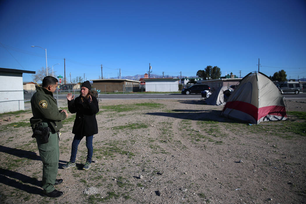 On this morning, social workers, representing WestCare Nevada addiction treatment, the Salvation Army, U.S. Vets and other groups, checked individuals in on tablet computers, making sure they were in the Homeless Management Information System that tracks the service needs of the estimated 6,000 homeless people scattered throughout the county.
