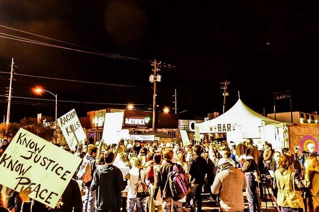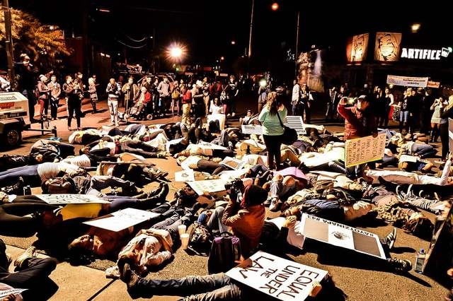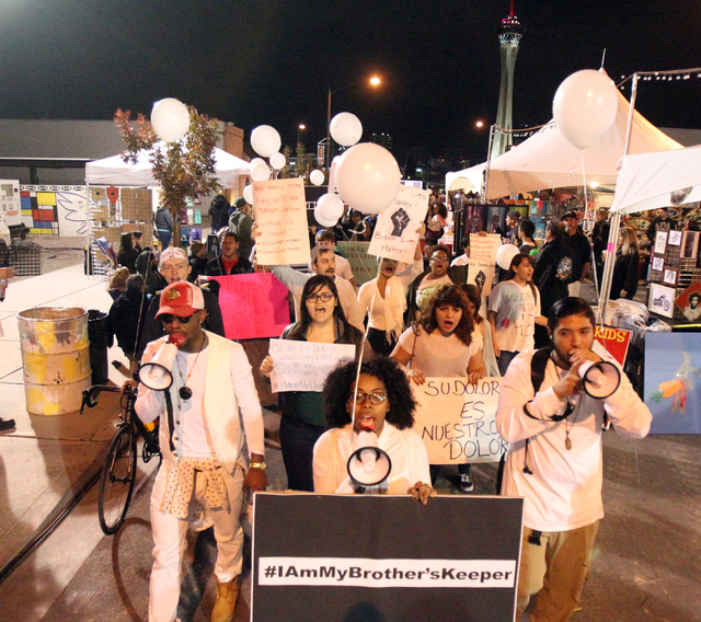 Demonstrators stormed downtown Las Vegas’ First Friday issuing a call for justice and showing their solidarity with other “die-ins” staged across the country in response to recent officer-involved shootings in which African-American men were killed and law enforcement faced no consequences.