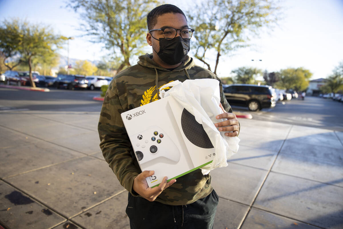 “I’m here hopefully for a graphics card and computer parts,” 18-year-old Alex Vilorenu said as he stood near the end of a line that snaked all the way around the corner of the store at 6950 Arroyo Crossing Parkway at 4:40 a.m.