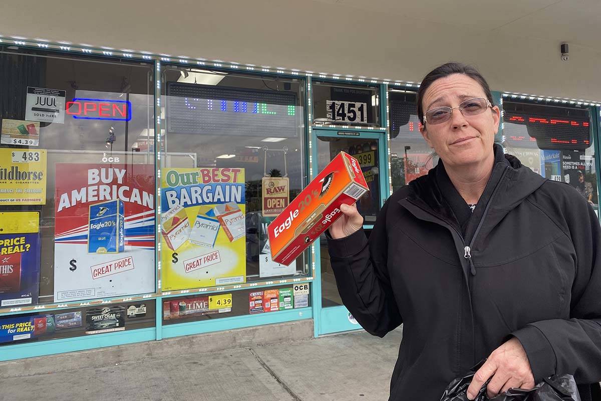 Smoker Arlene Alfaro, 71, said she bought cigarettes at The Smoke Shop on Jones in case they become scarce or more expensive as time goes on.