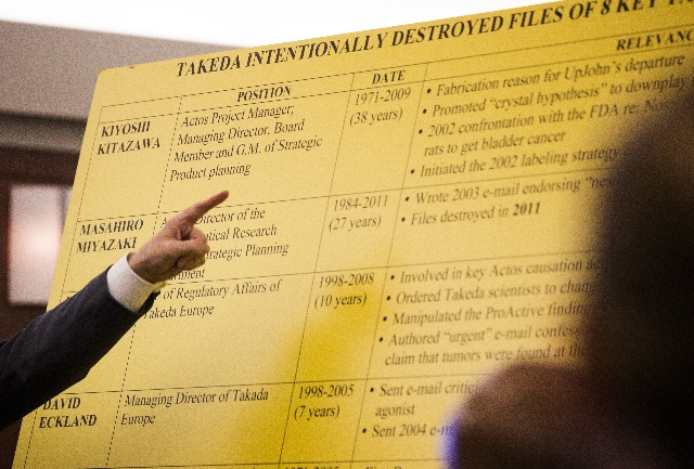 The lawyer accused Takeda of putting profits over product safety and said the company "continues to hide the whole truth about this drug."