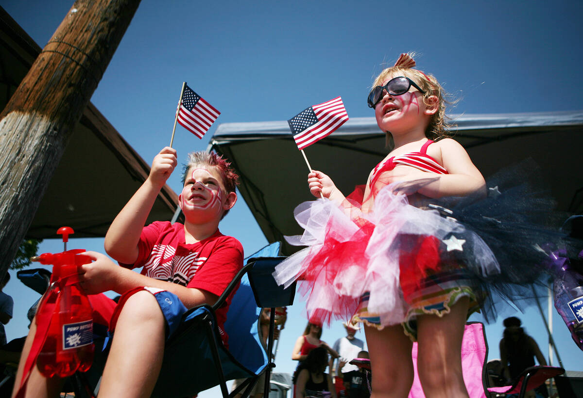 In this July 4, 2014, file photo, Chase, 8, left, and Rainey Easter, 2, watch the 66th Annual Boulder City Damboree Celebration "Wings of Freedom" parade in Boulder City. The parade was a main event among activities during Boulder City’s Fourth of July celebration. (Ronda Churchill/Las Vegas Review-Journal)