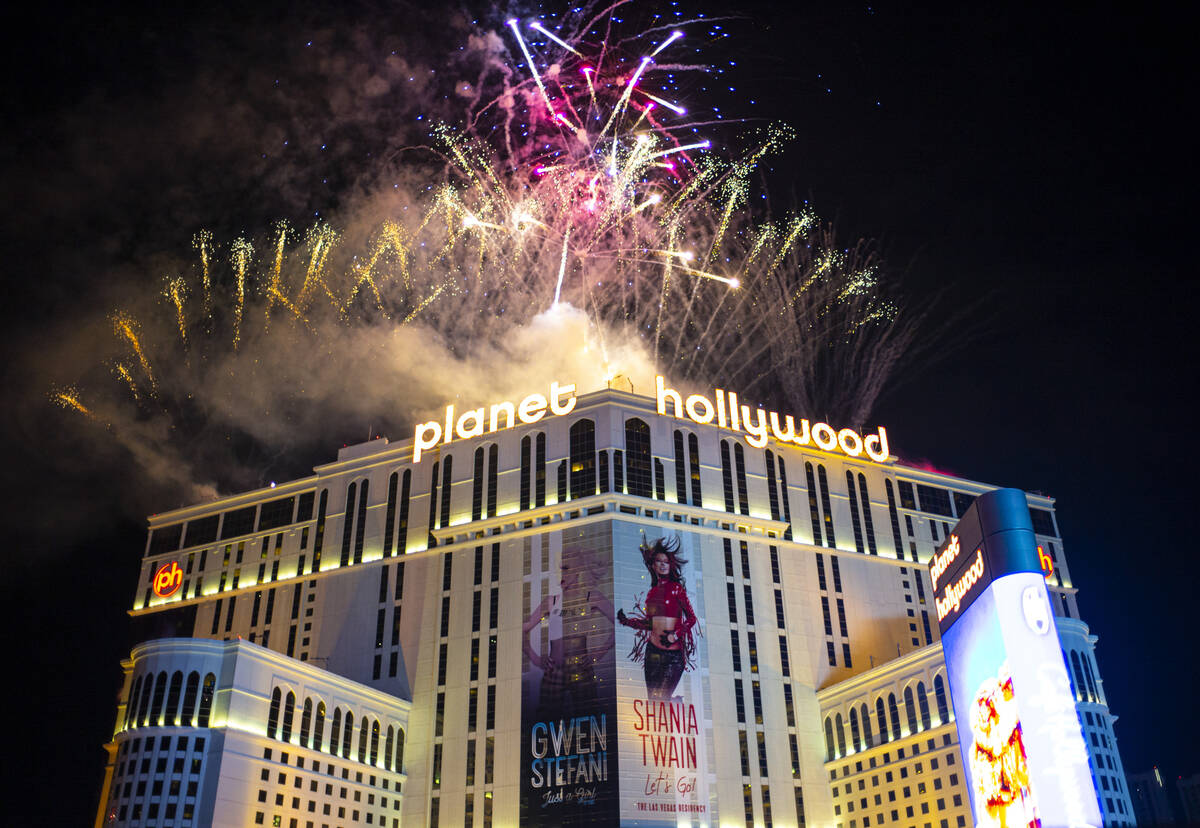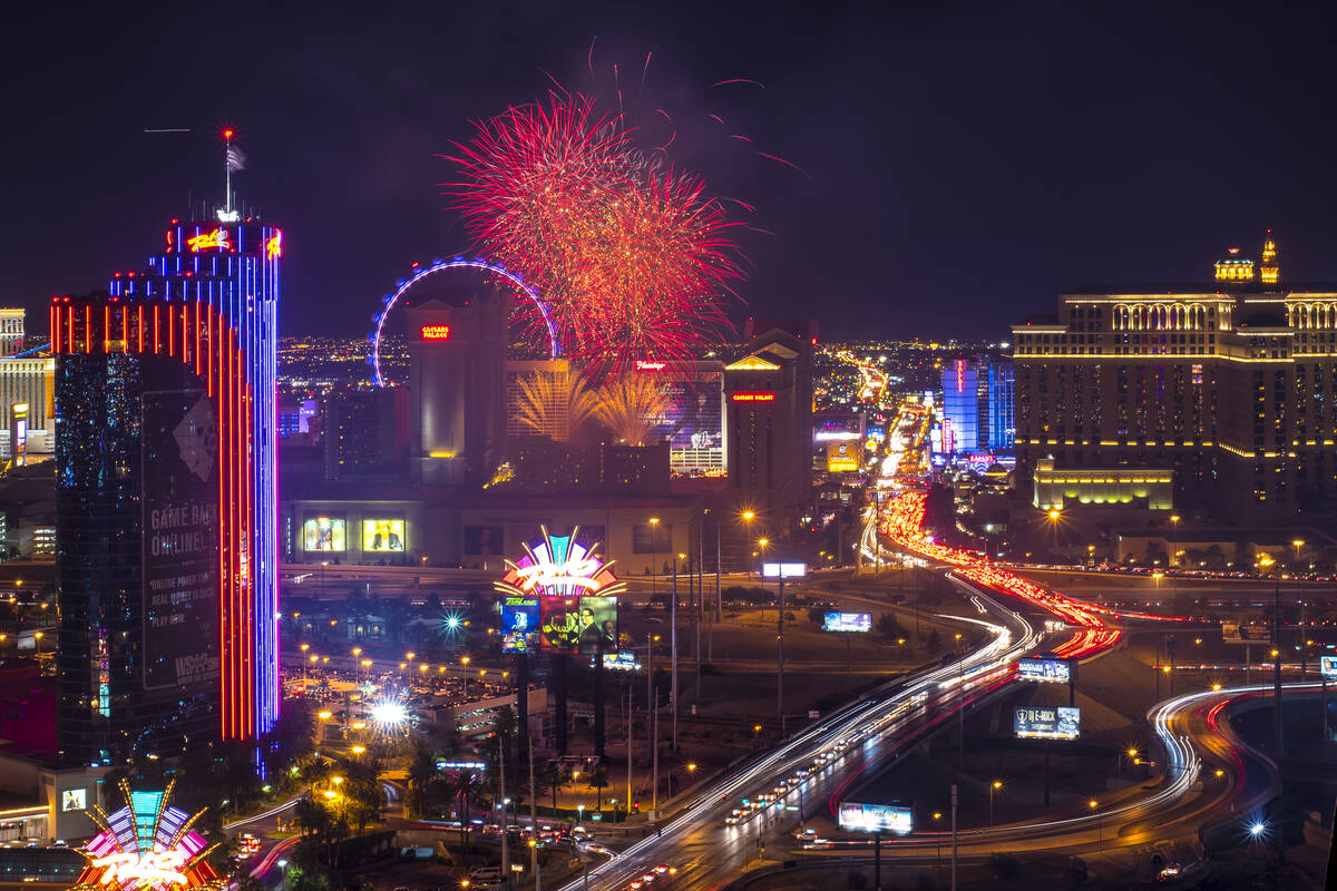 In this July 4, 2015, file photo, fireworks explode over the Strip in Las Vegas as seen from Ghostbar at the Palms hotel-casino. (Joshua Dahl/Las Vegas Review-Journal)