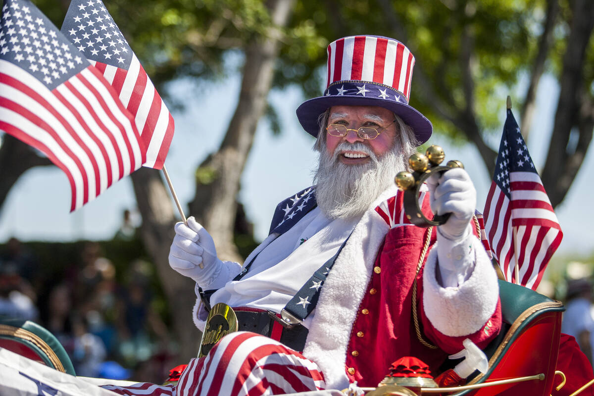 In this July 4, 2017, file photo, a patriotic Santa Claus smiles out to the crowds during the Summerlin Council Patriotic Parade in Summerlin. (Patrick Connolly/Las Vegas Review-Journal) @PConnPie