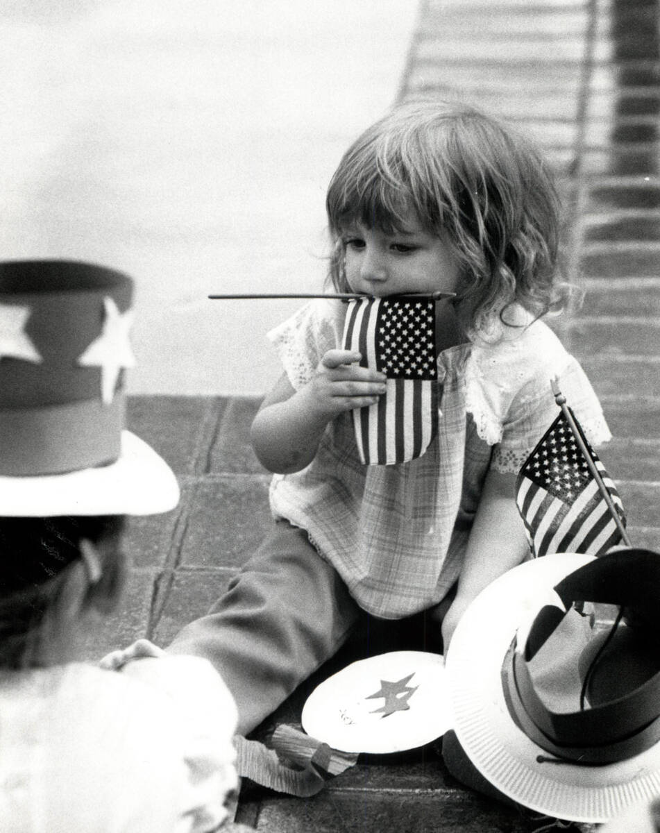 This July 4, 1982, file photo shows a girl holding a flag in Boulder City. (Gary Thompson/Las Vegas Review-Journal)