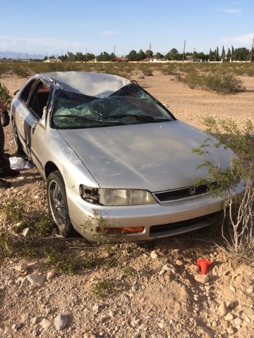 At 4:17 p.m., the car rolled over at Las Vegas Boulevard and Erie Avenue, and the driver fled on foot into an adjacent desert area, Buratczuk said. The vehicle came to rest on its roof.
