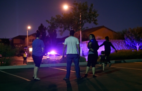 Several neighbors were corralled into the parking lot of Canyon Springs High School, where they were told about 7:30 p.m. that they would have to wait several hours before they could get to their homes.