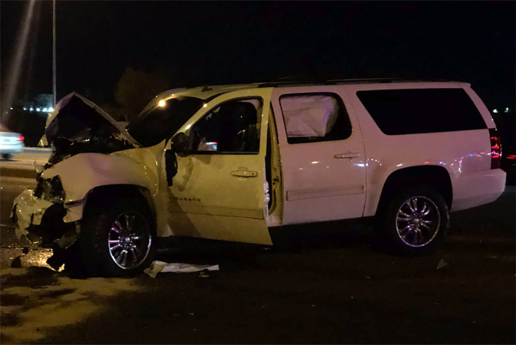 The crash happened about 3:35 p.m. Thursday at the intersection of Blue Diamond Road and South Lindell Road, the Nevada Highway Patrol said.