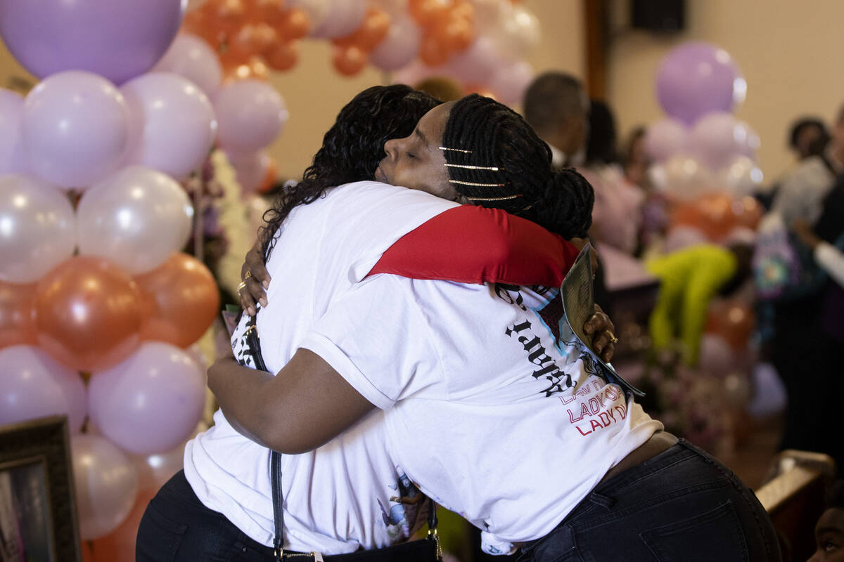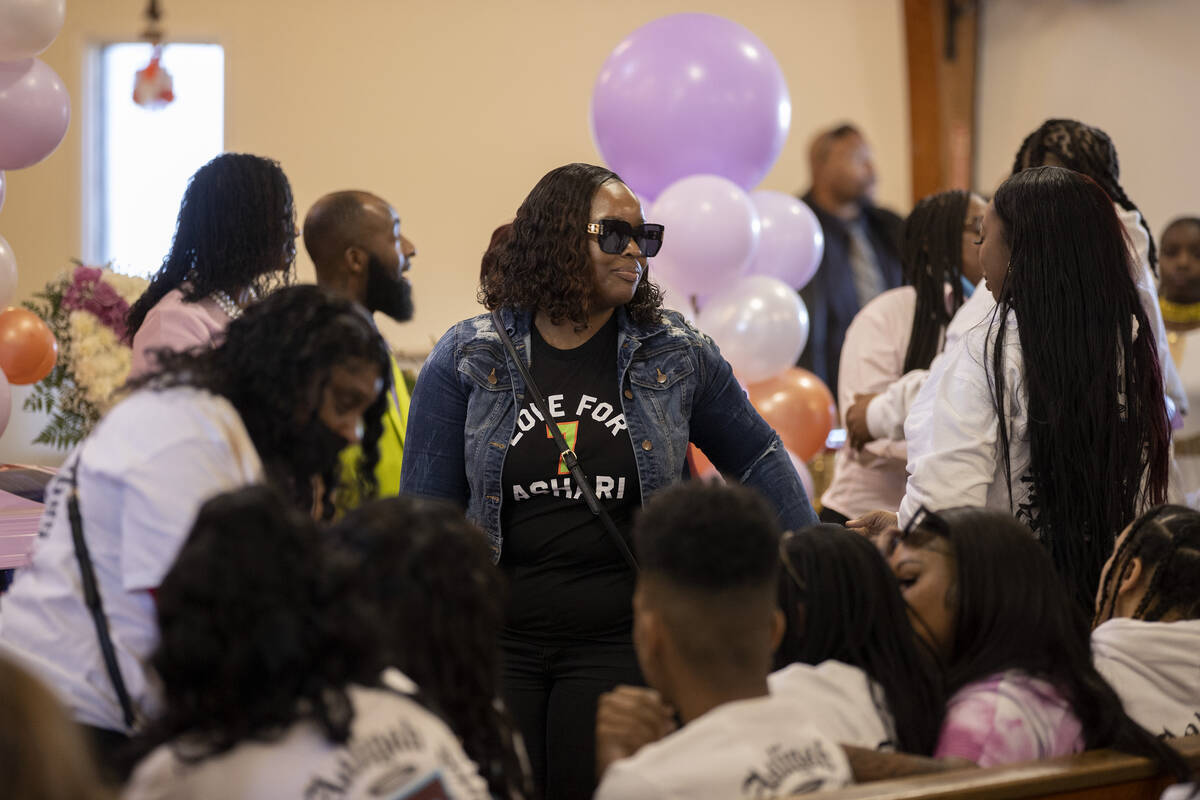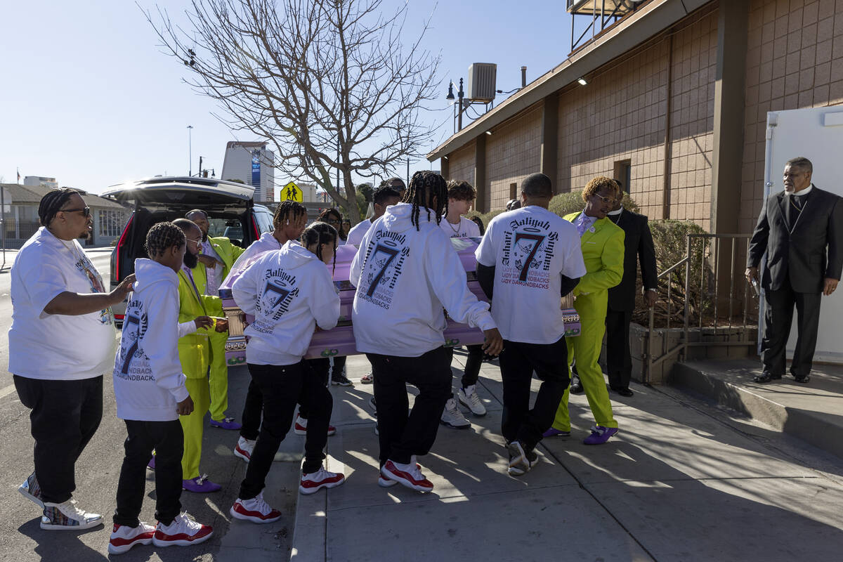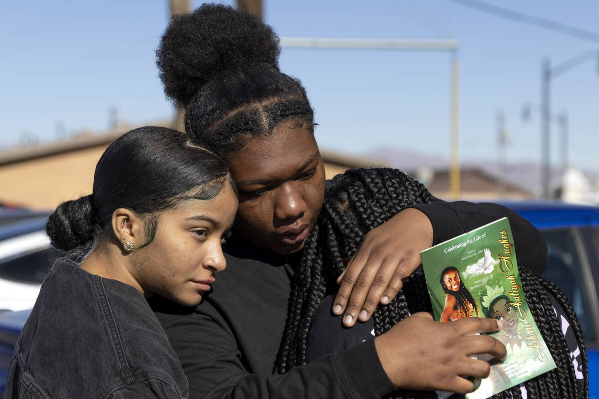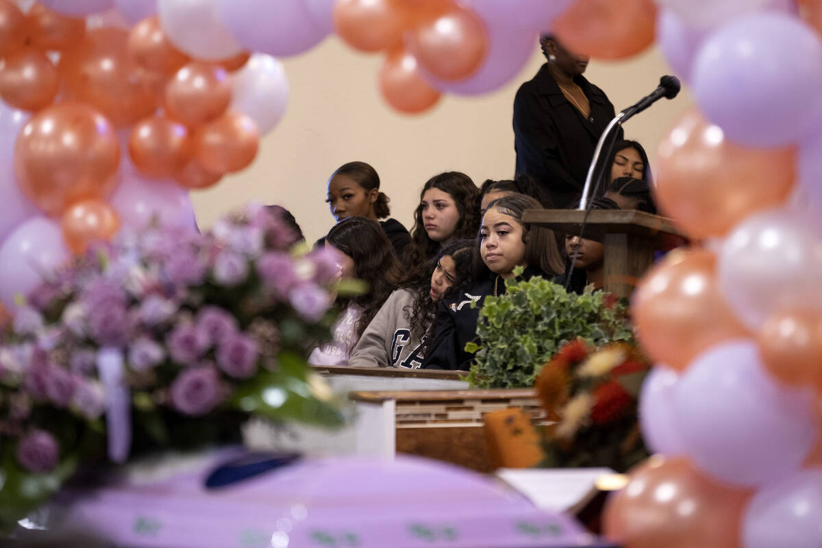 Before a crowd of more than 200 mourners Saturday, pall bearers placed the casket containing the body of 16-year-old Ashari Aaliyah Hughes beneath an arch of pink and orange balloons fronting the altar of the New Bethel Baptist Church in western Las Vegas.